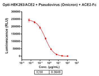 Figure 6. Blocking Omicron pseudovirus entry into ACE2 overexpressing target cells by means of ACE2-Fc chimera protein.